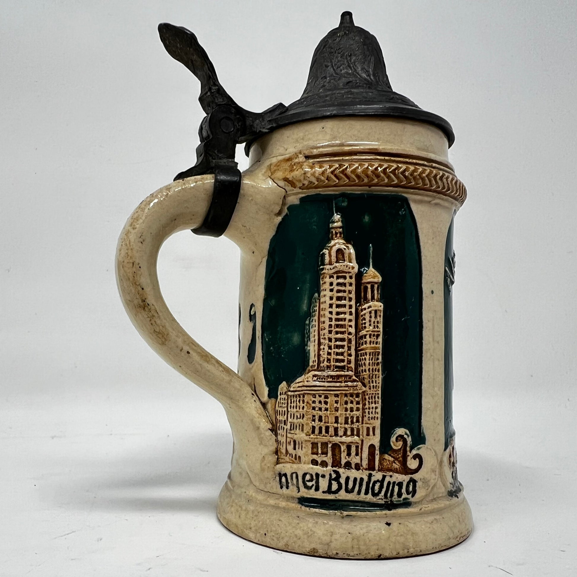 New York City Souvenir Stein, Singer Building, Statue of Liberty, Metropolitan Life Building