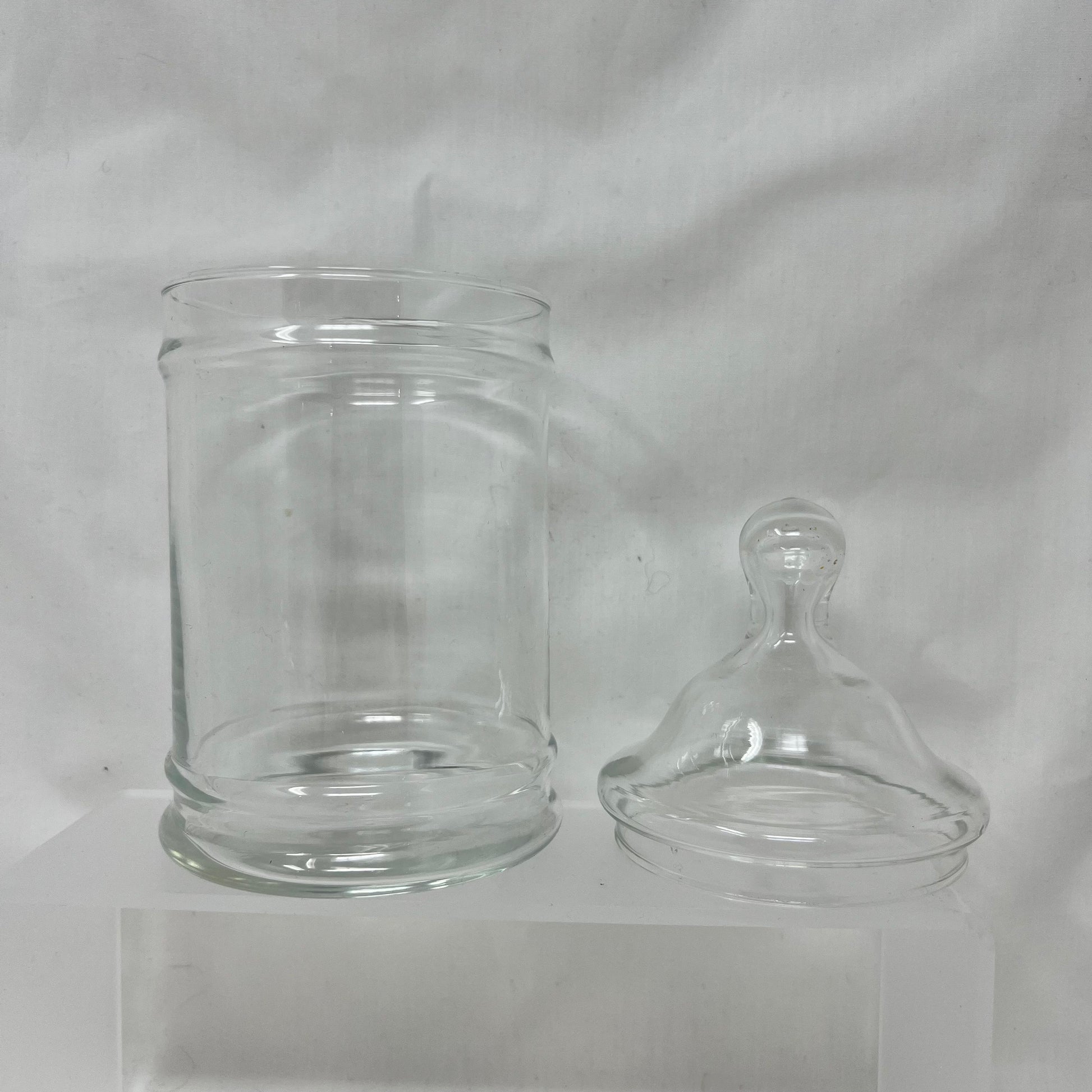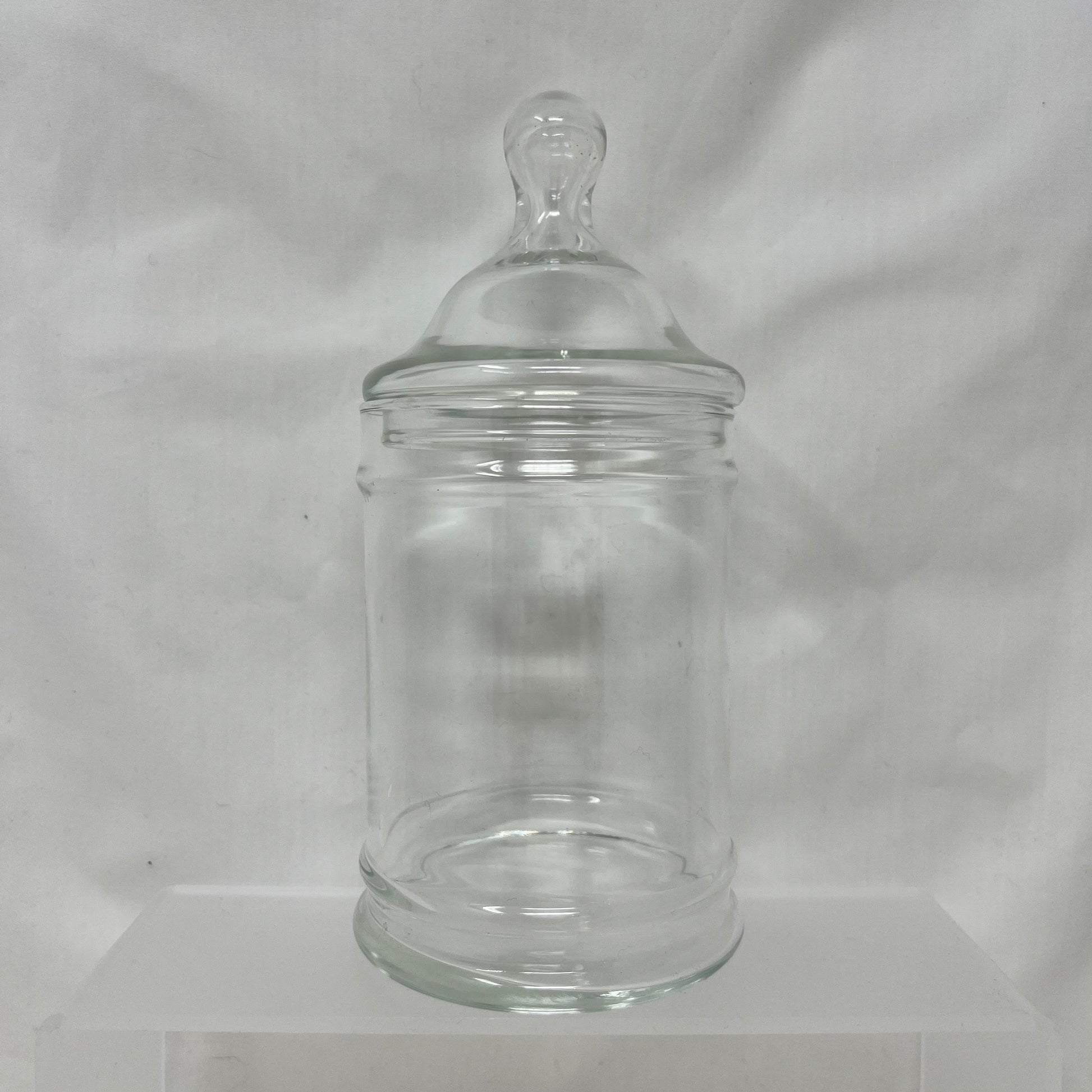 Vintage clear glass jar like those seen in old-time general store or soda fountain.