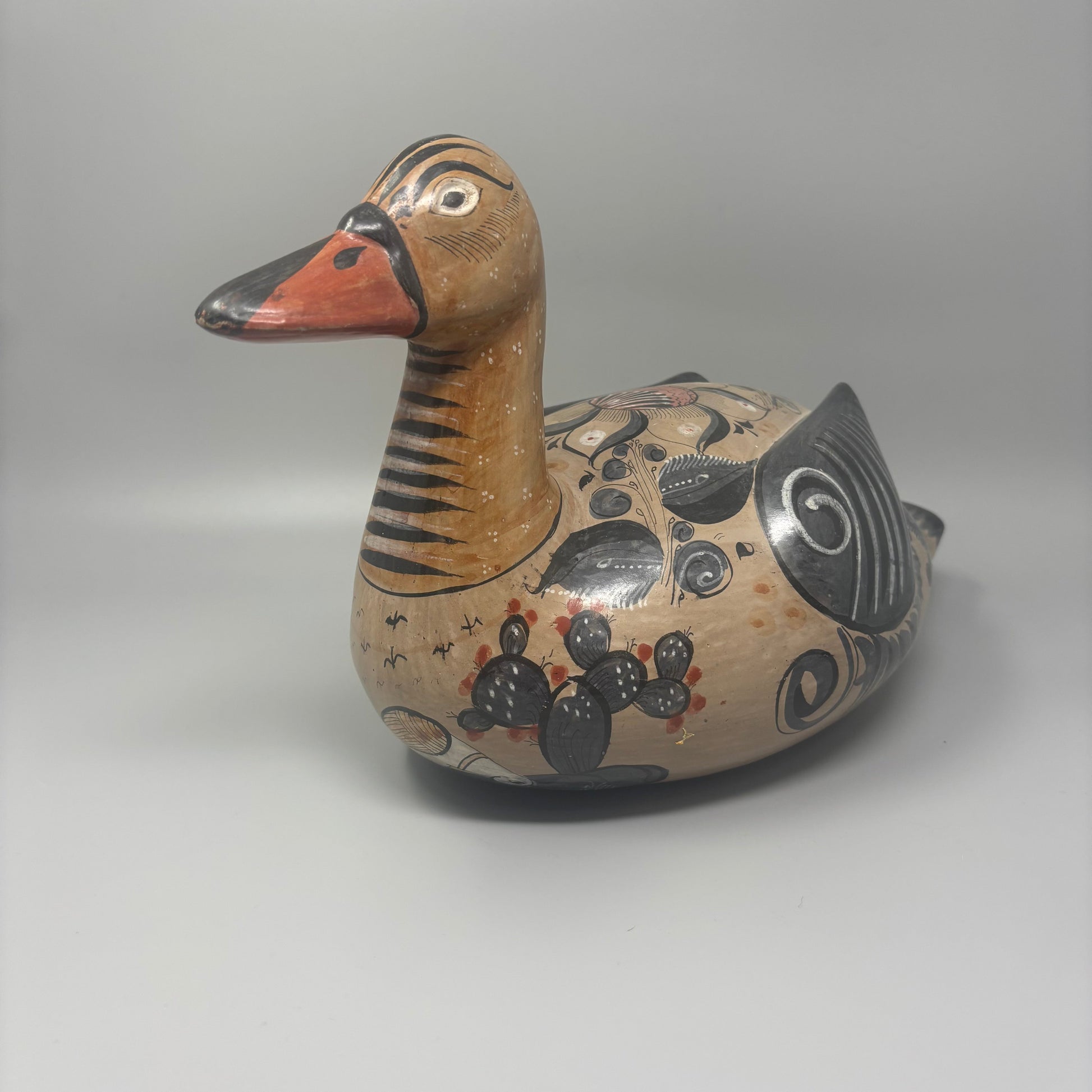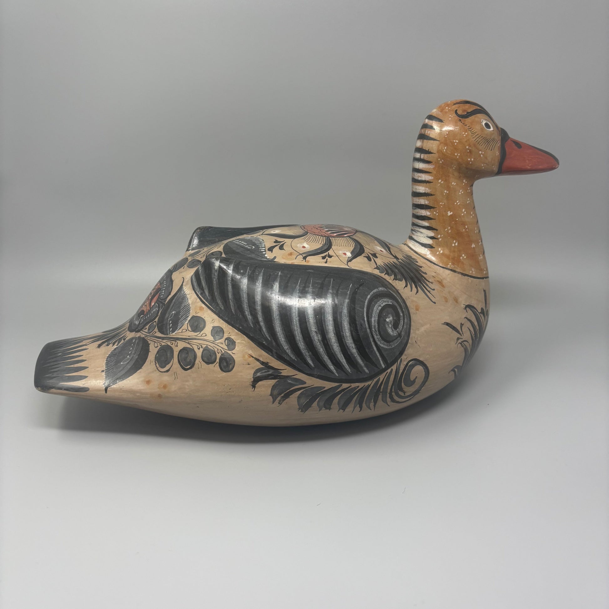 Here we have a large vintage hand painted and handmade ceramic duck from Tonala Mexico. While you usually see small items like this one rather than large ones this is really large! Tonala pottery's trademark is smooth finishes and detailed designs all over.
