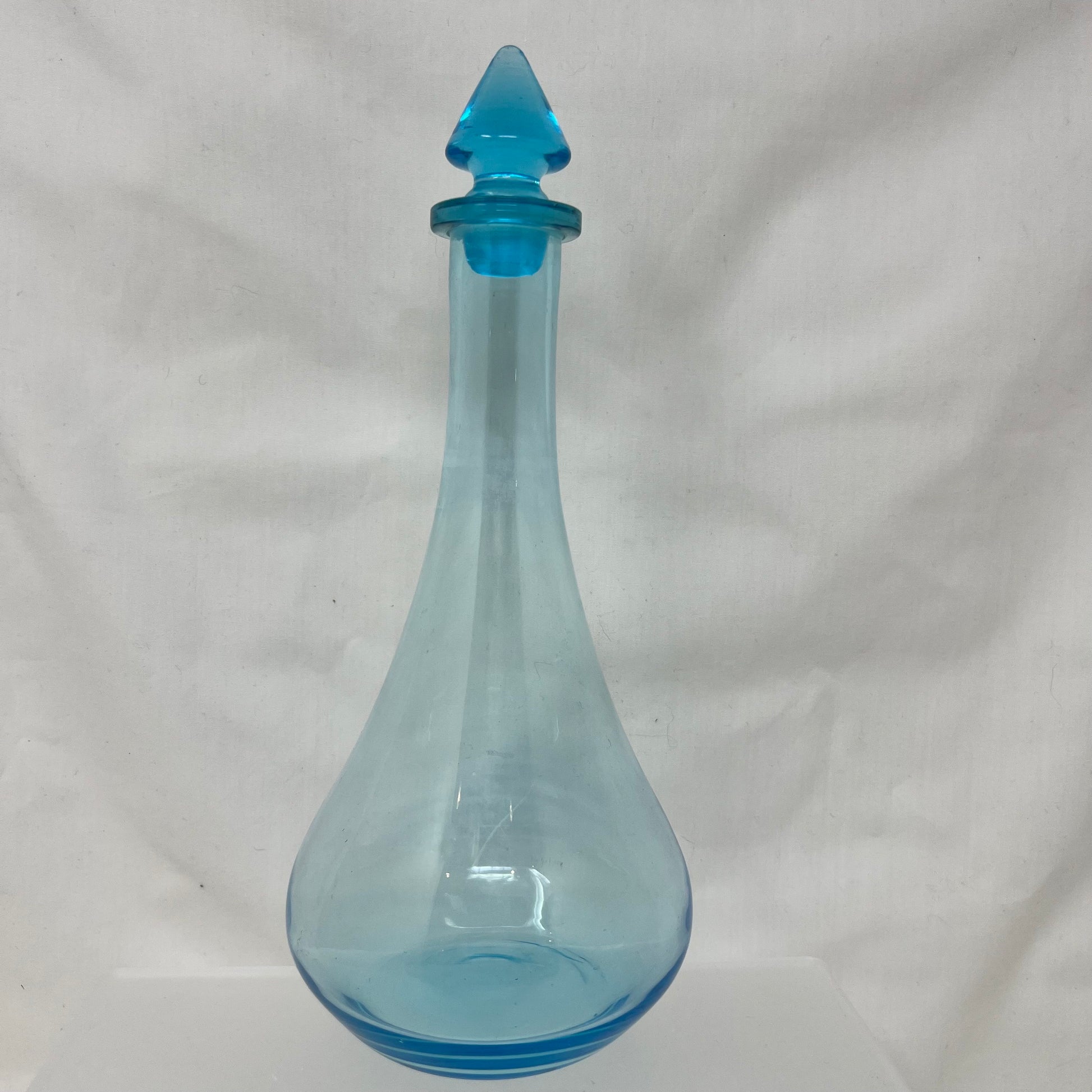 Pier 1 Empoli Blue Genie Bottle Decanter with Original Stopper, Circa 1970's