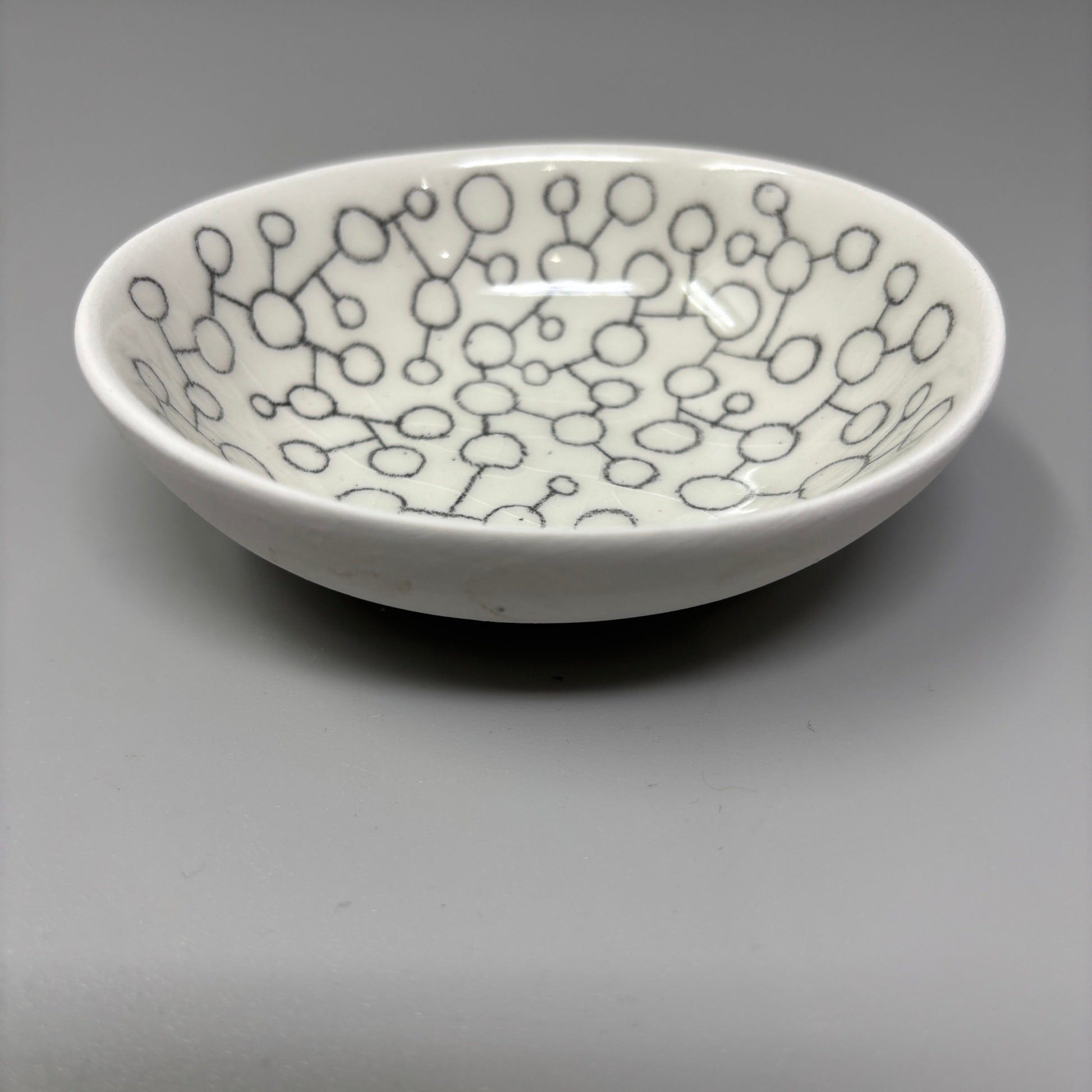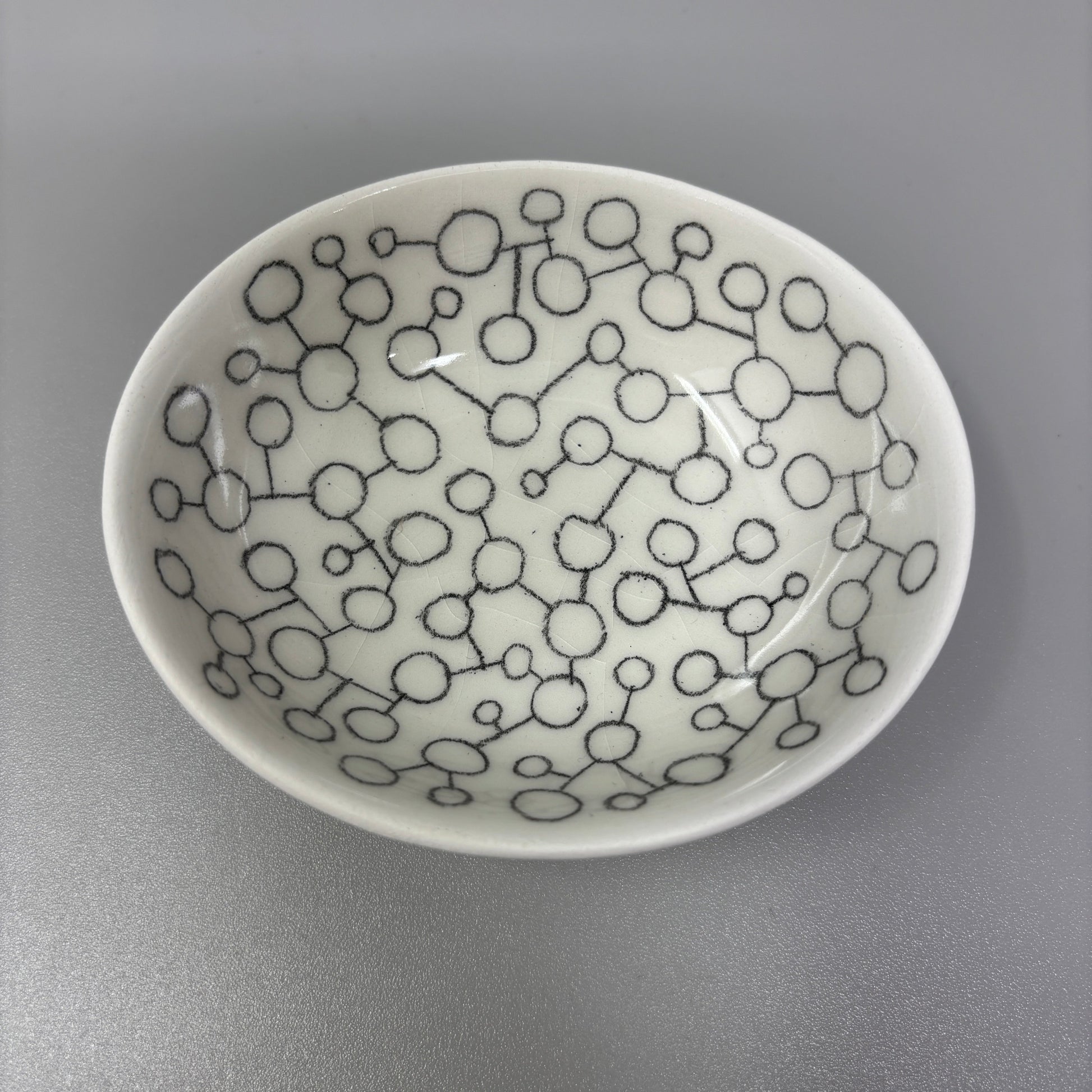 Hand made by Pbody Dsign. The Bubbles and Sticks pattern was structures and their playful nature. The designs are made with an underglaze pencil.