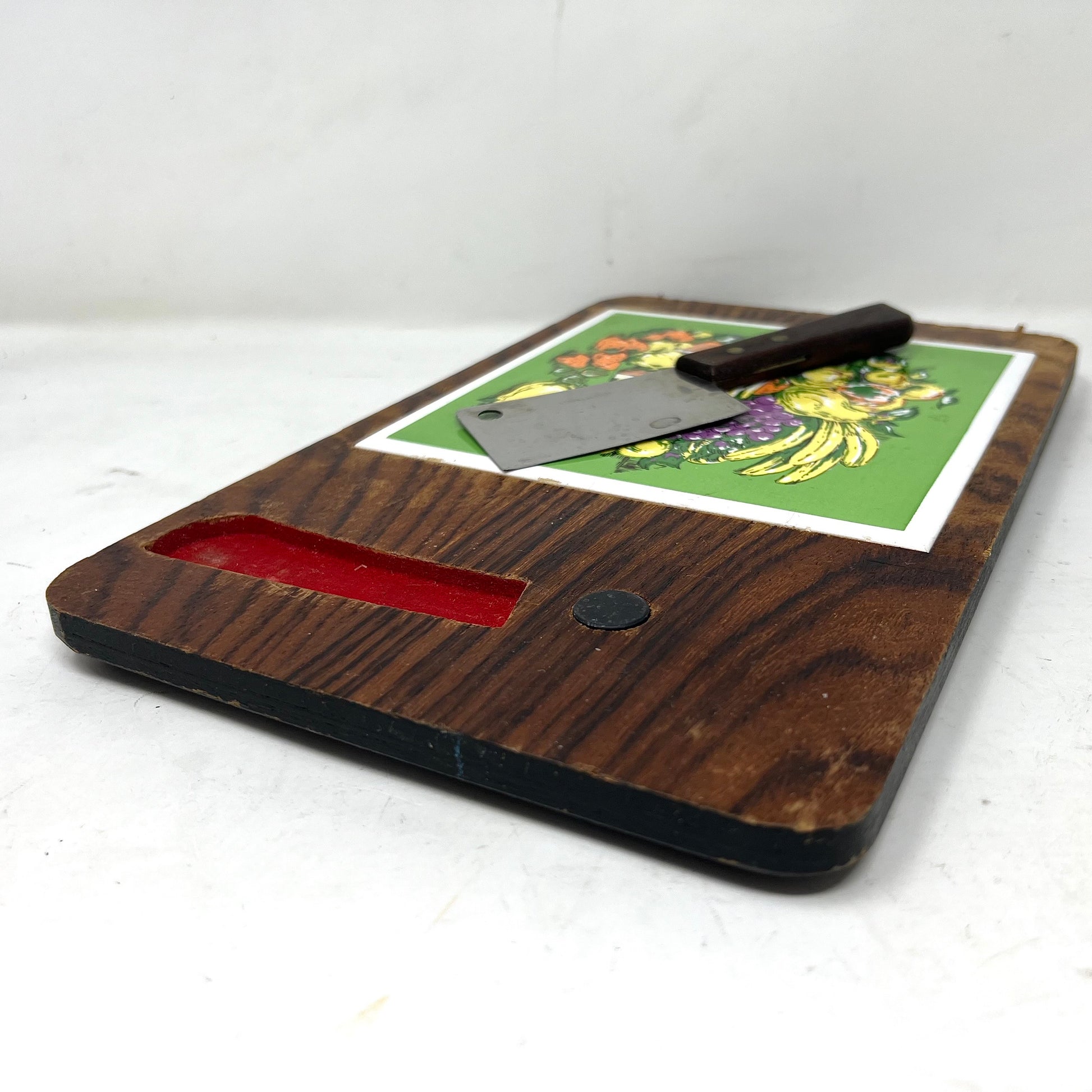 Vintage wood and ceramic Charcuterie Board with cleaver shaped knife.