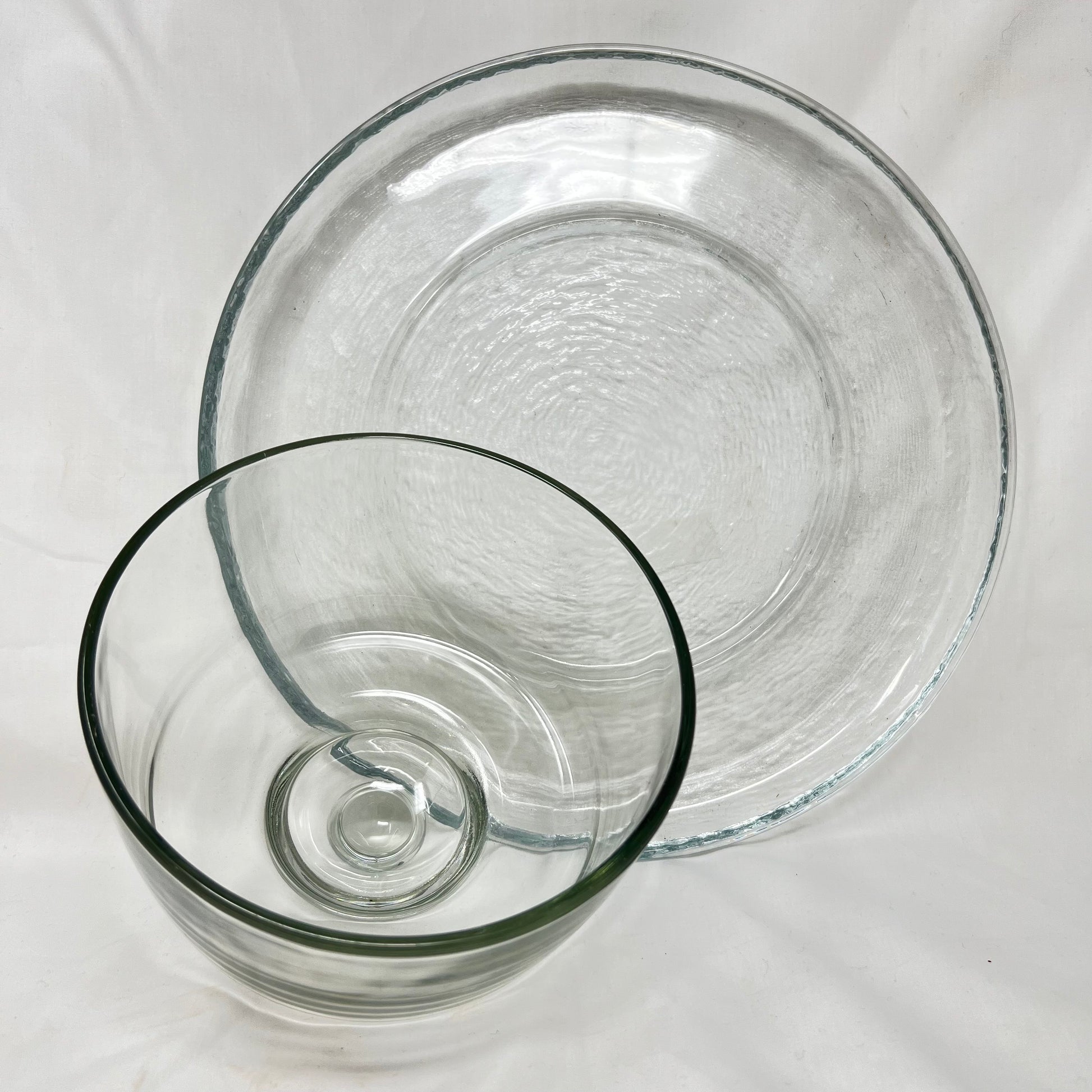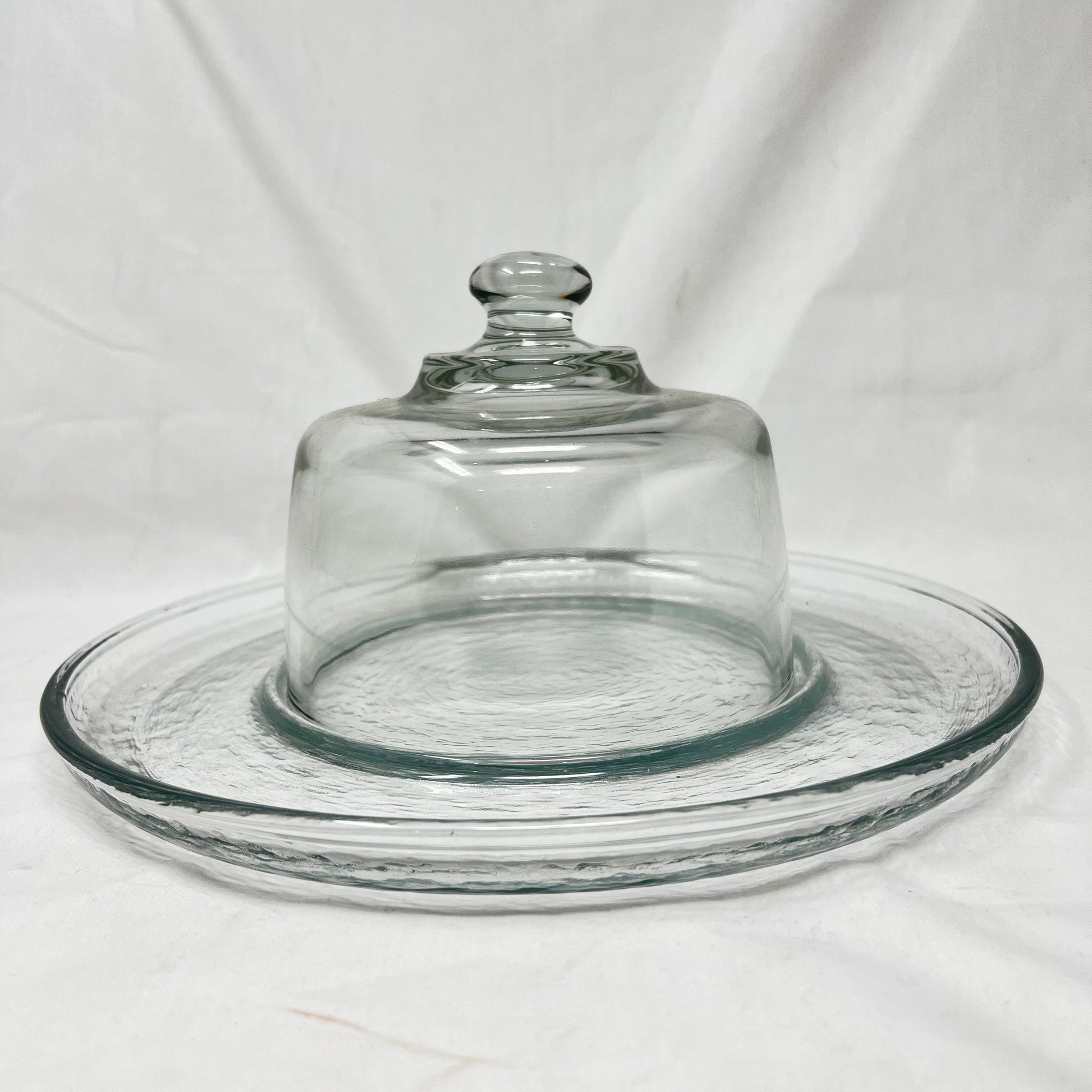 Vintage Anchor Hocking Clear Glass Cheese Service Set with Platter & Dome LidPlatter is 12” in diameter.
