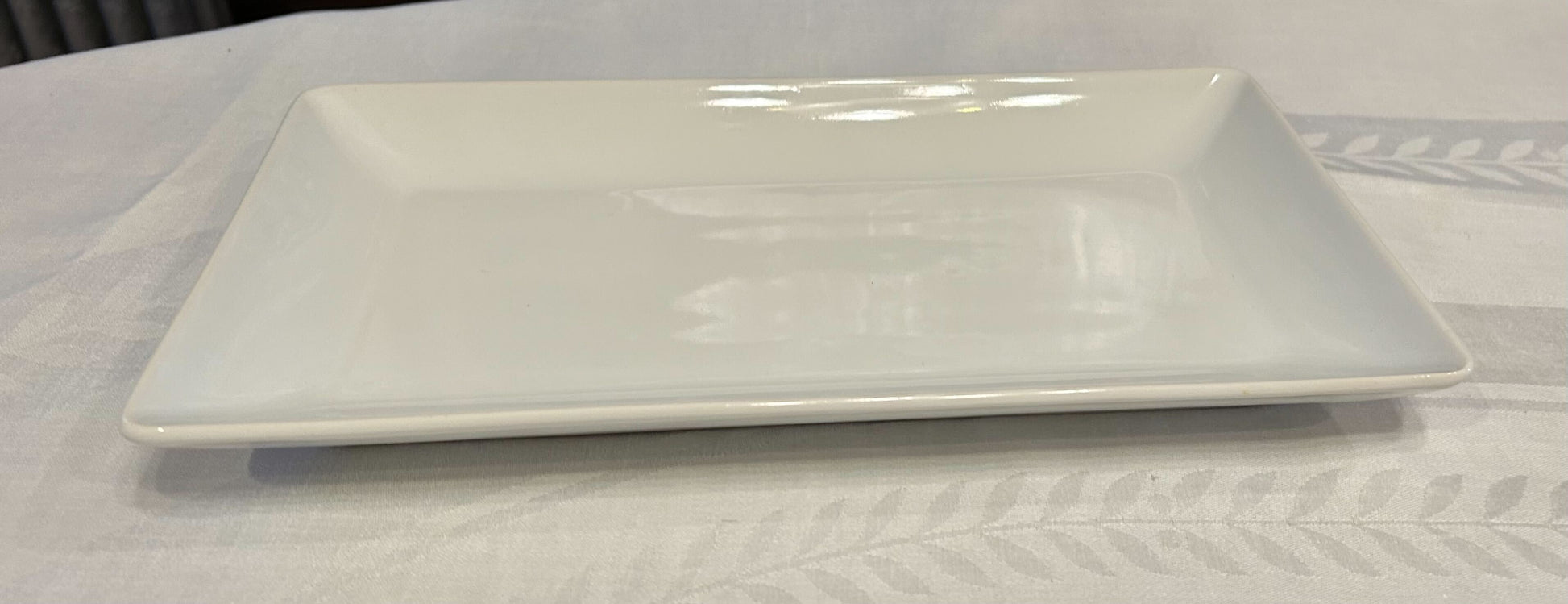 White rectangular ceramic serving tray.