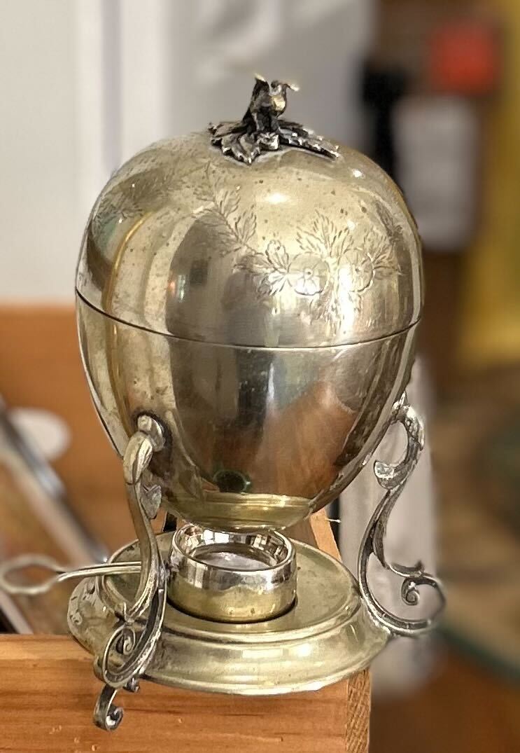 Antique English silver plate egg coddler. Price $40. Cost 1/3