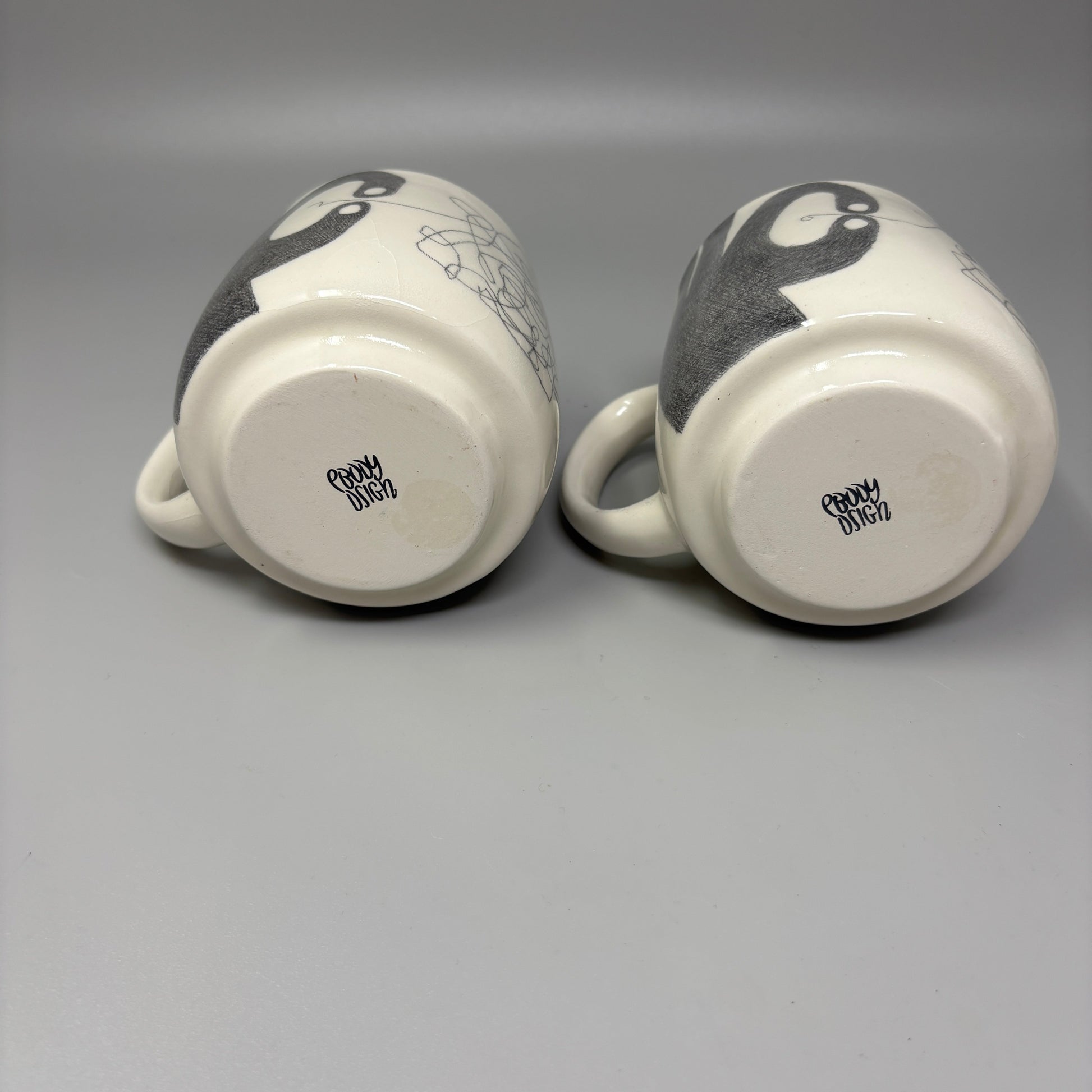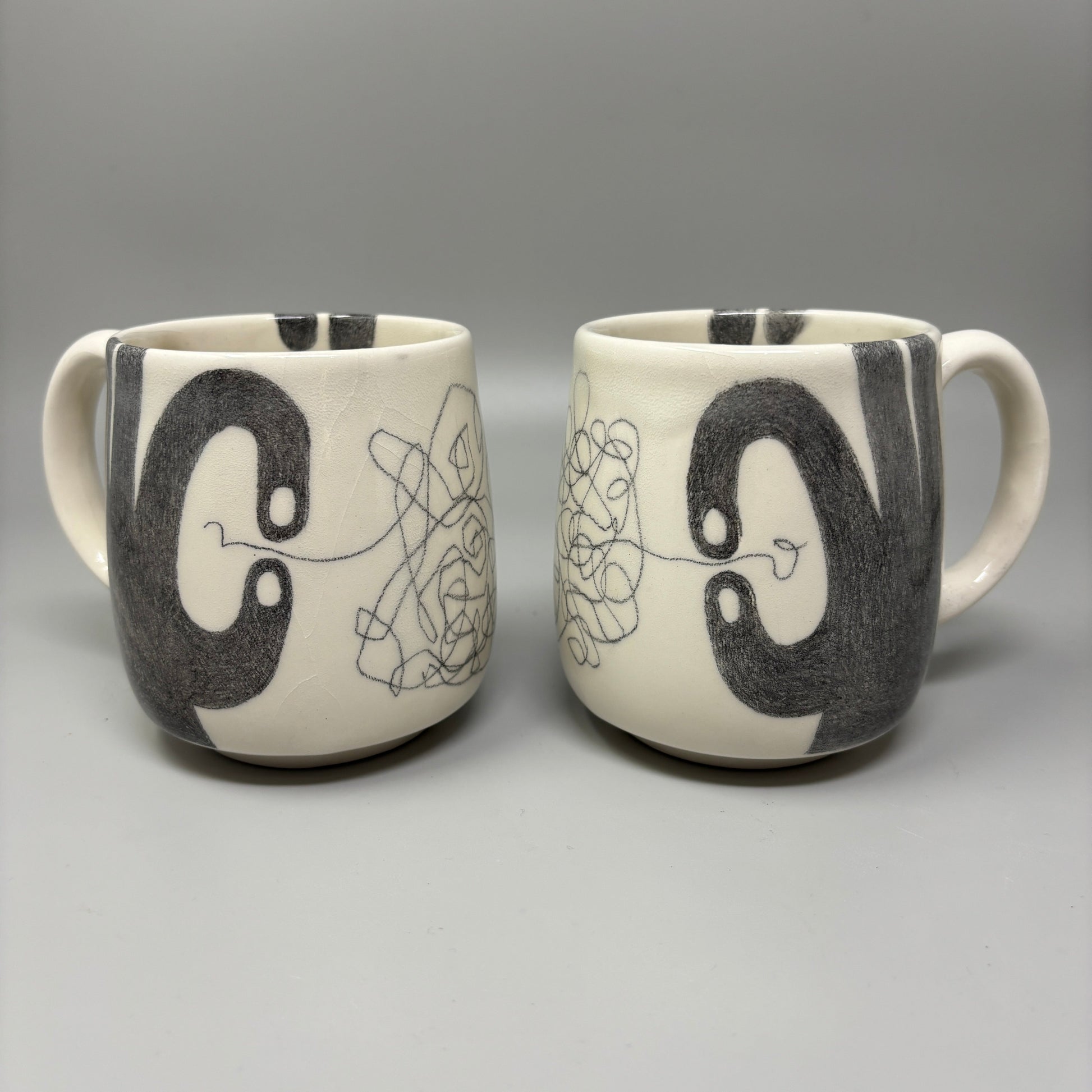 Handmade by Pbody Dsign. Everything is OK mugs are individually hand drawn using underglaze pencil which replicated the effect of a graphite drawing. The hands on each side display the iconic “ok” sign while untangling the string between them signaling a reality and a promise.