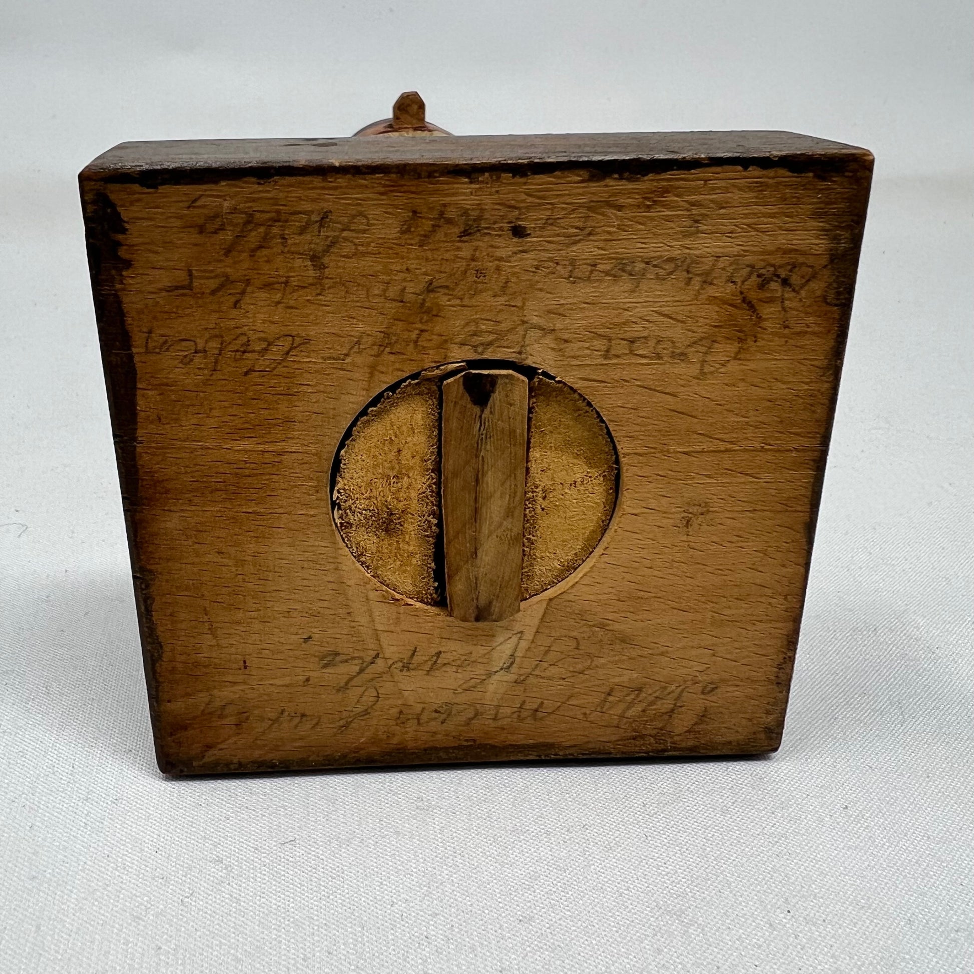 Old hand carved nut cracker, inscription in German, in faint pencil, on bottom of base.