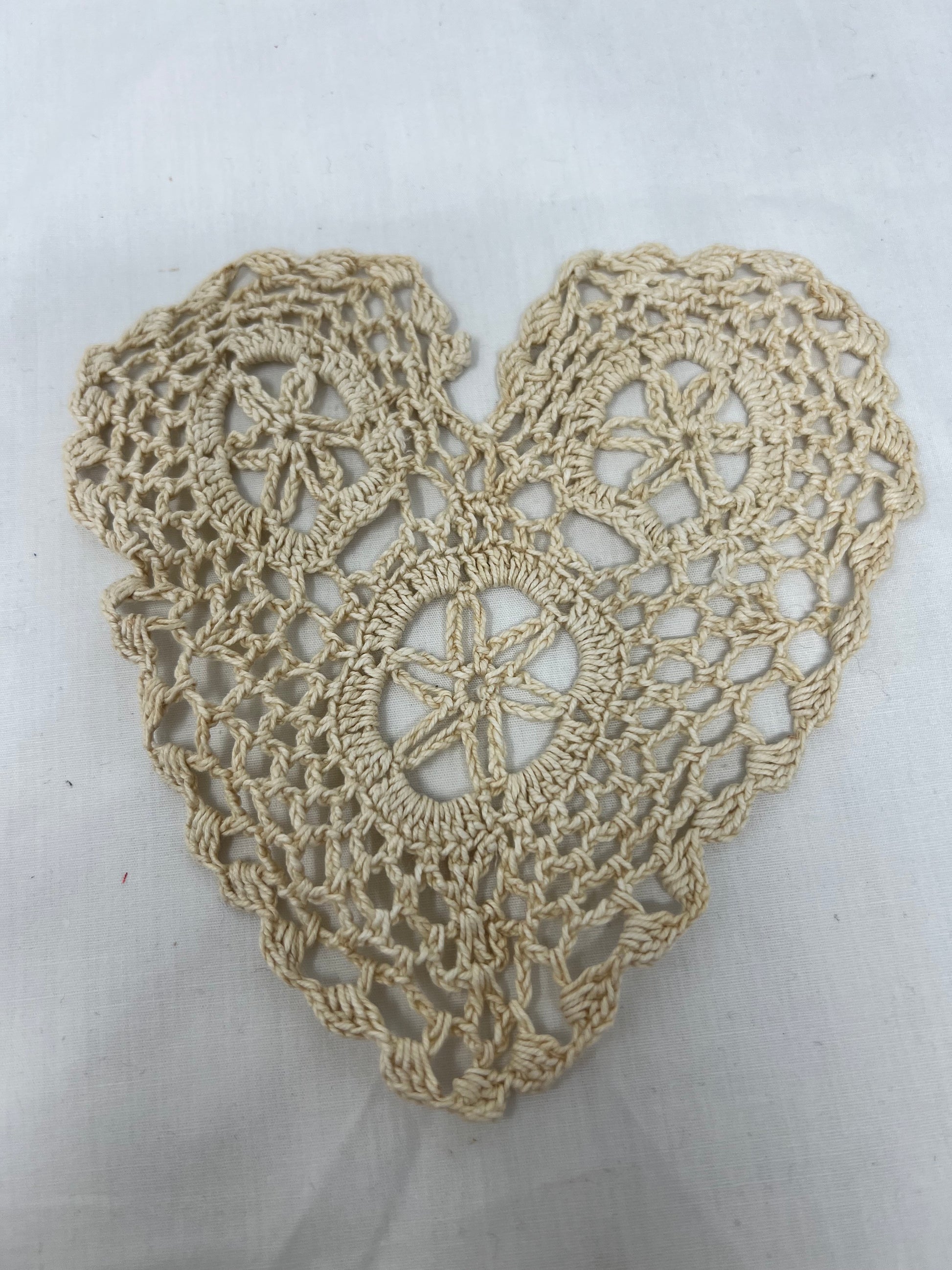 6” hand crocheted heart doily.