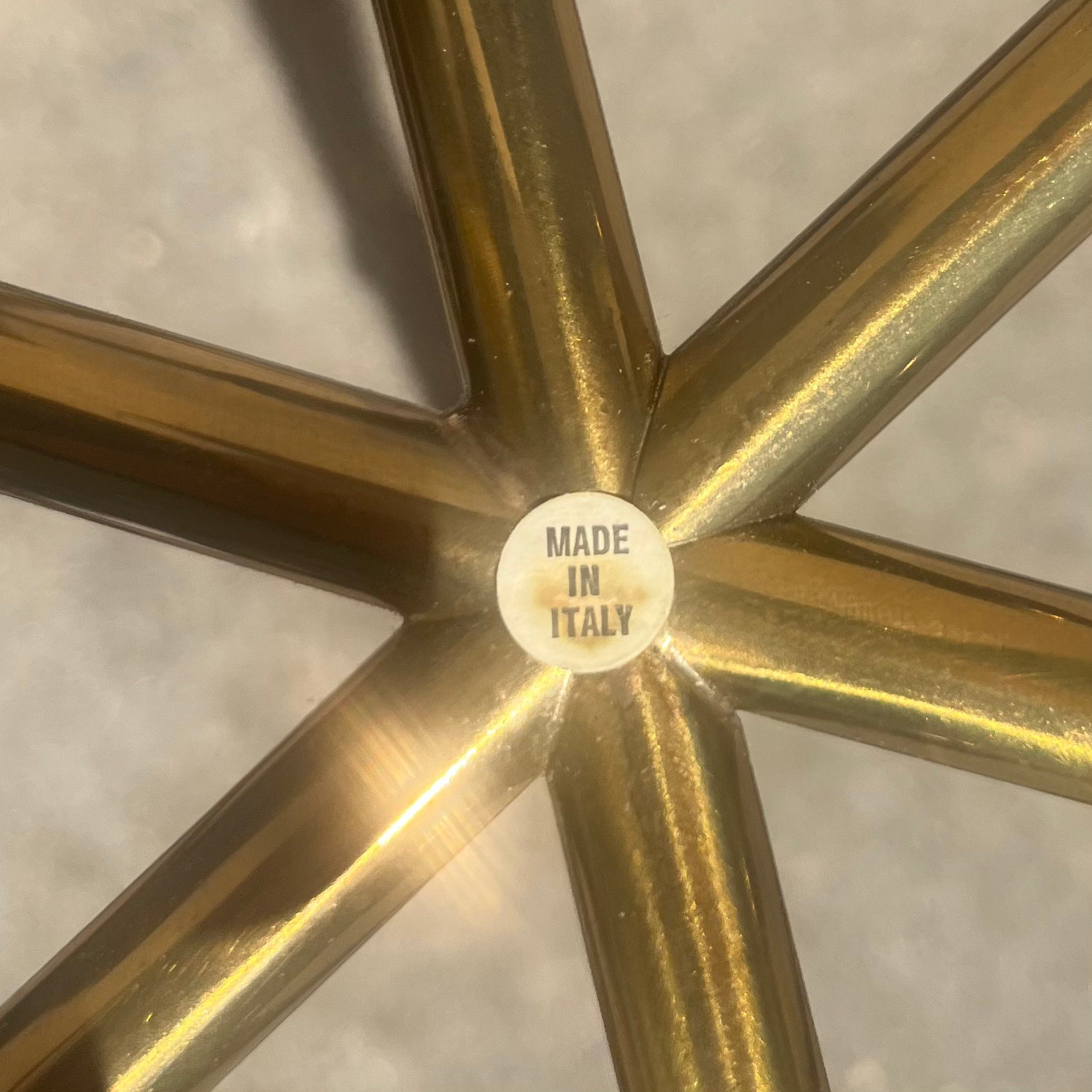 Vintage Brass Table, Hexagon Glass Top, made in Italy