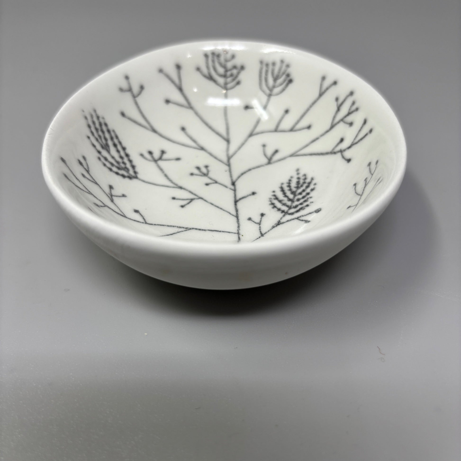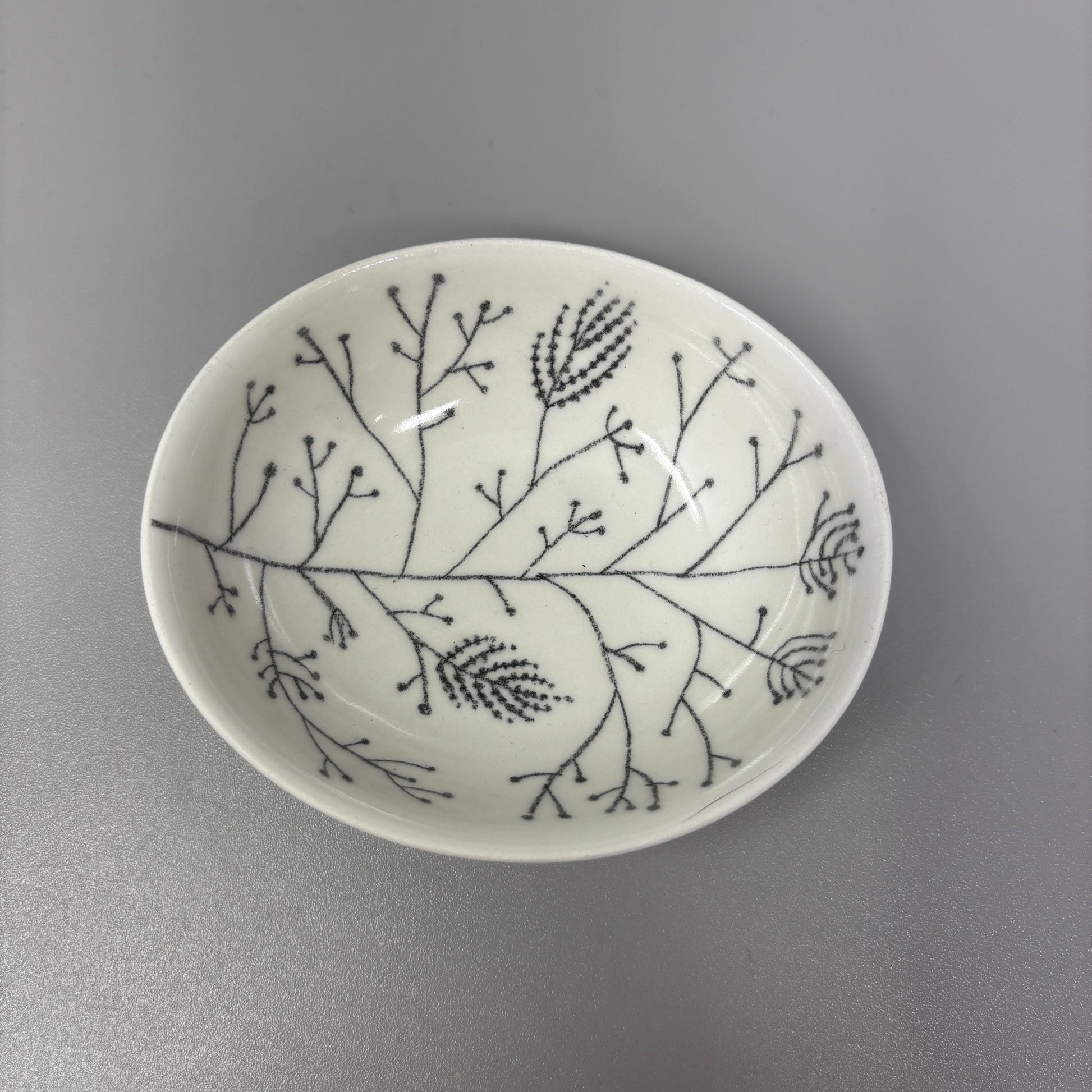 Handmade by Pbody Dsign. Inspired by its namesake, the Milkweed pattern is an imaginary interpretation of native plants showing the beauty of repetition in nature. Each piece is individually drawn in underglaze pencil.