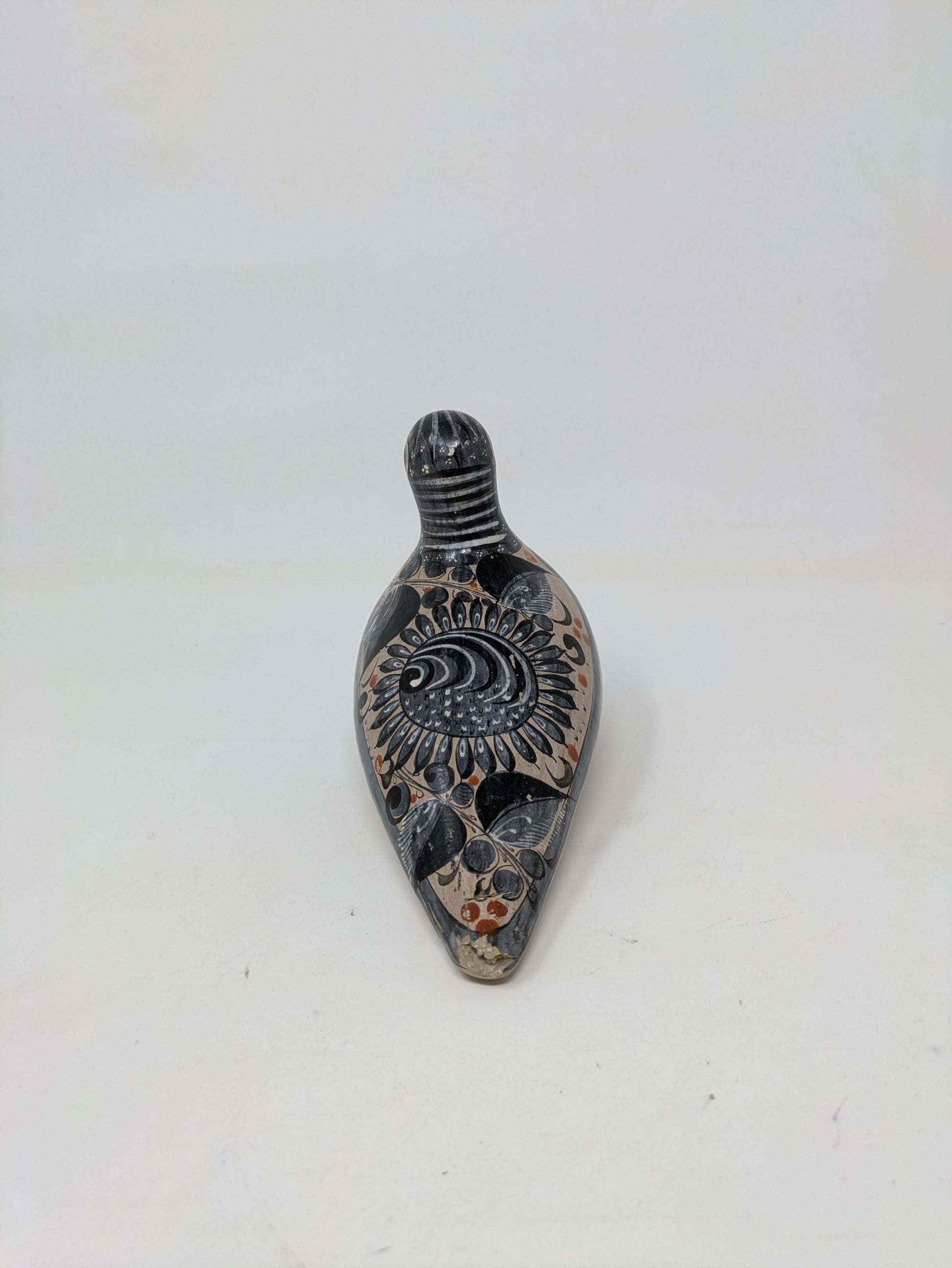 Hand-painted Mexican folk art statue of a dove adorned with nature motifs. See photos for condition.