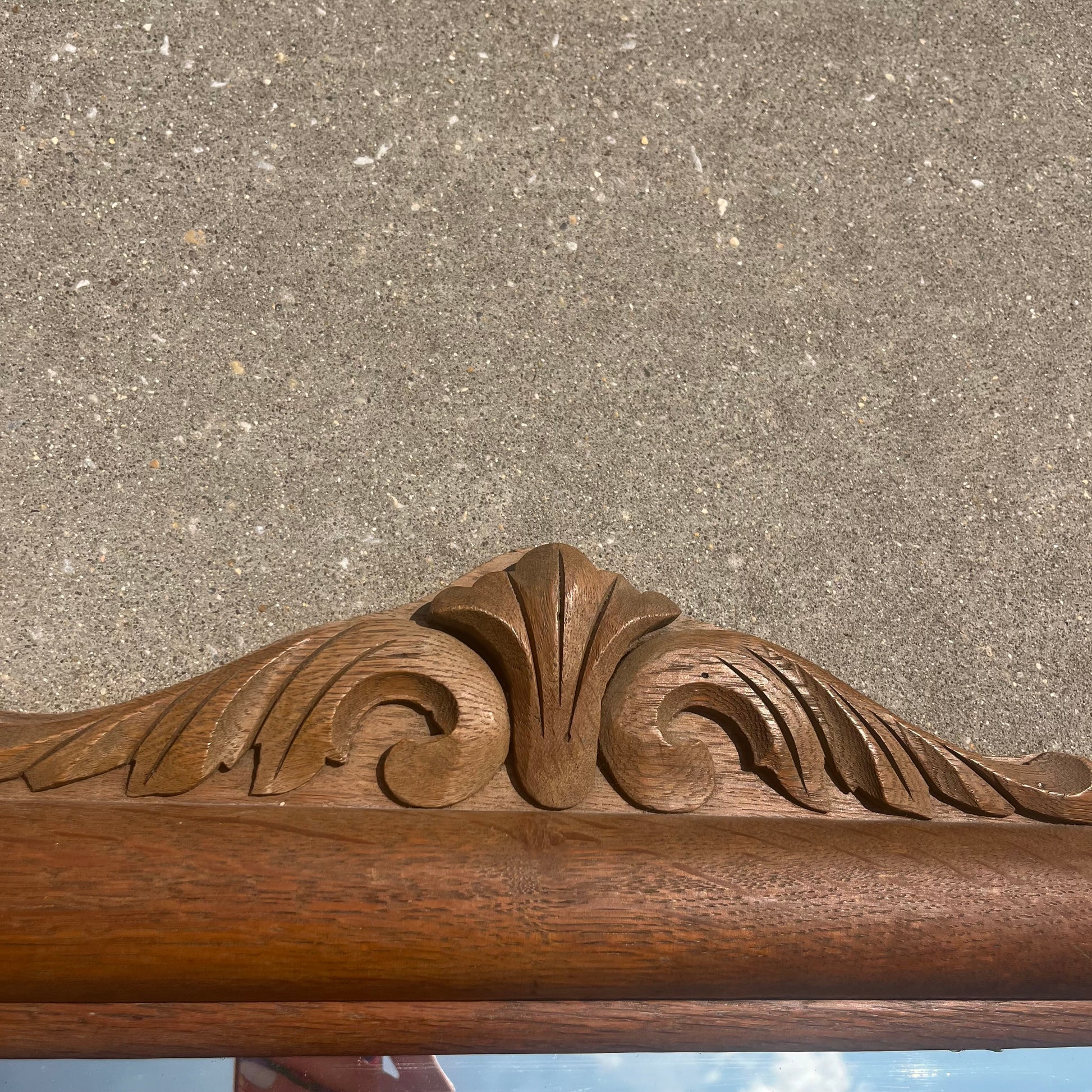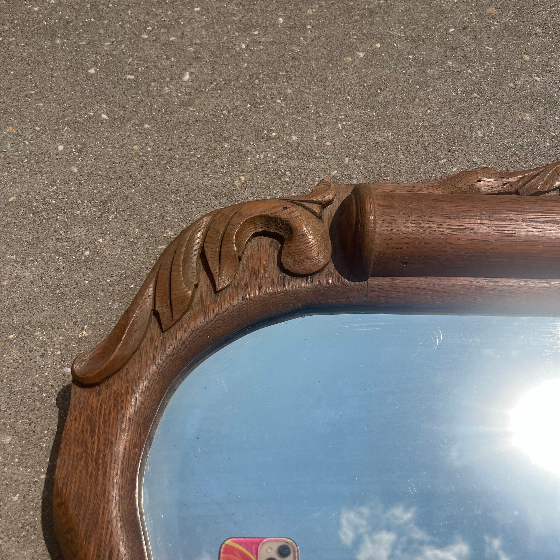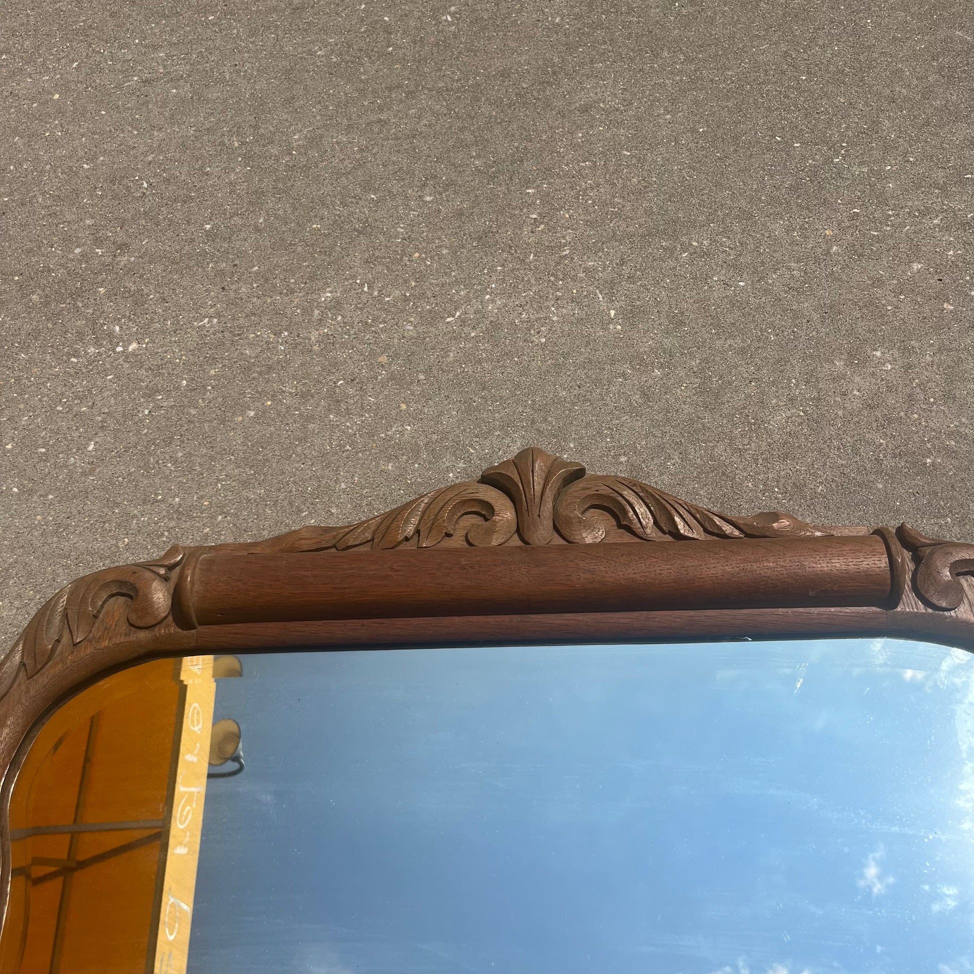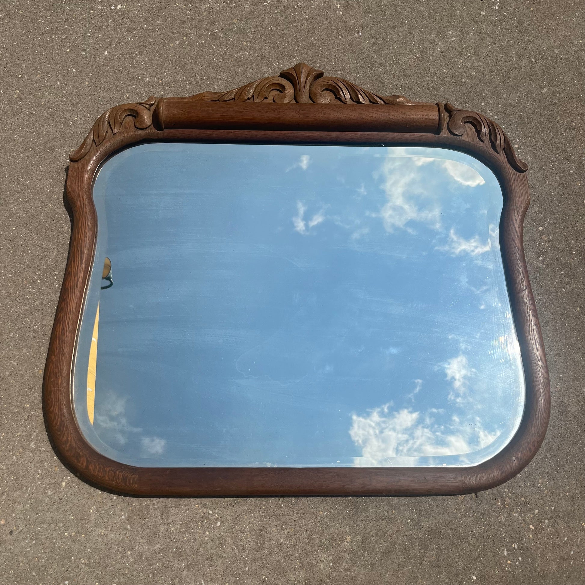 Ornate Tiger Oak Antique Mirror w/ Beveled Glass