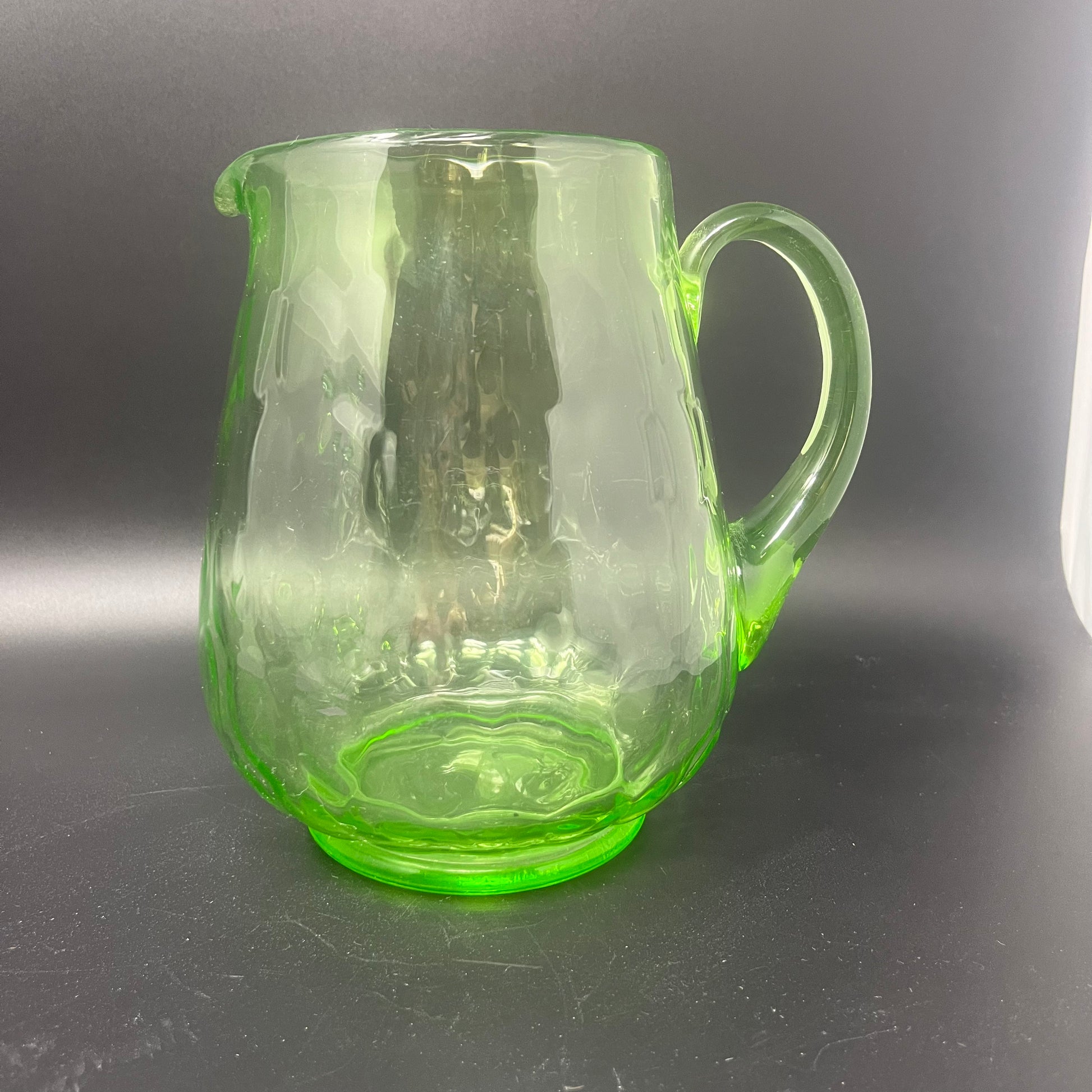 1920’s White Friars England Uranium Glass Striated Pitcher, 29 qt.