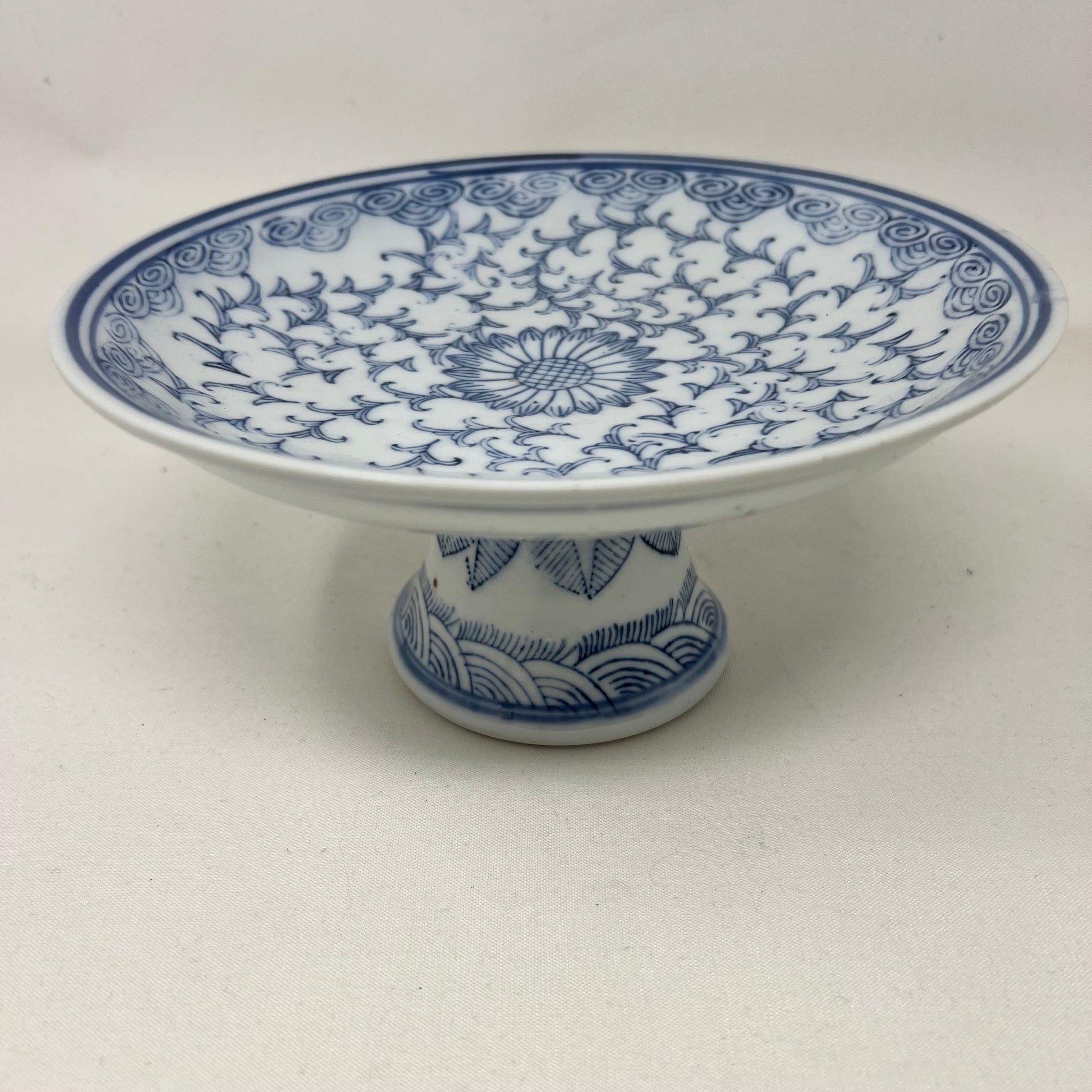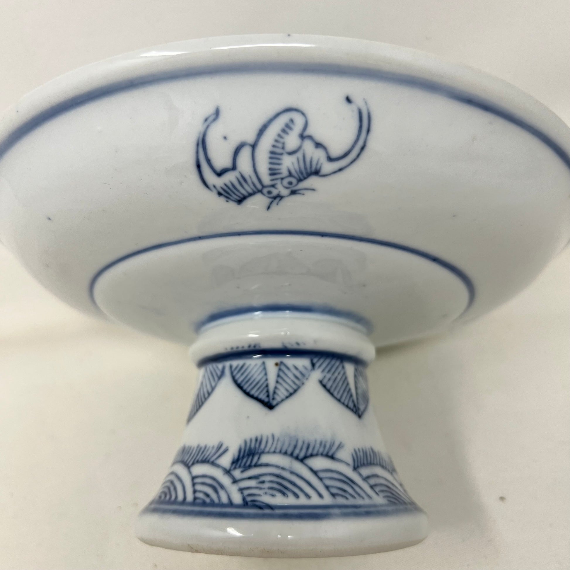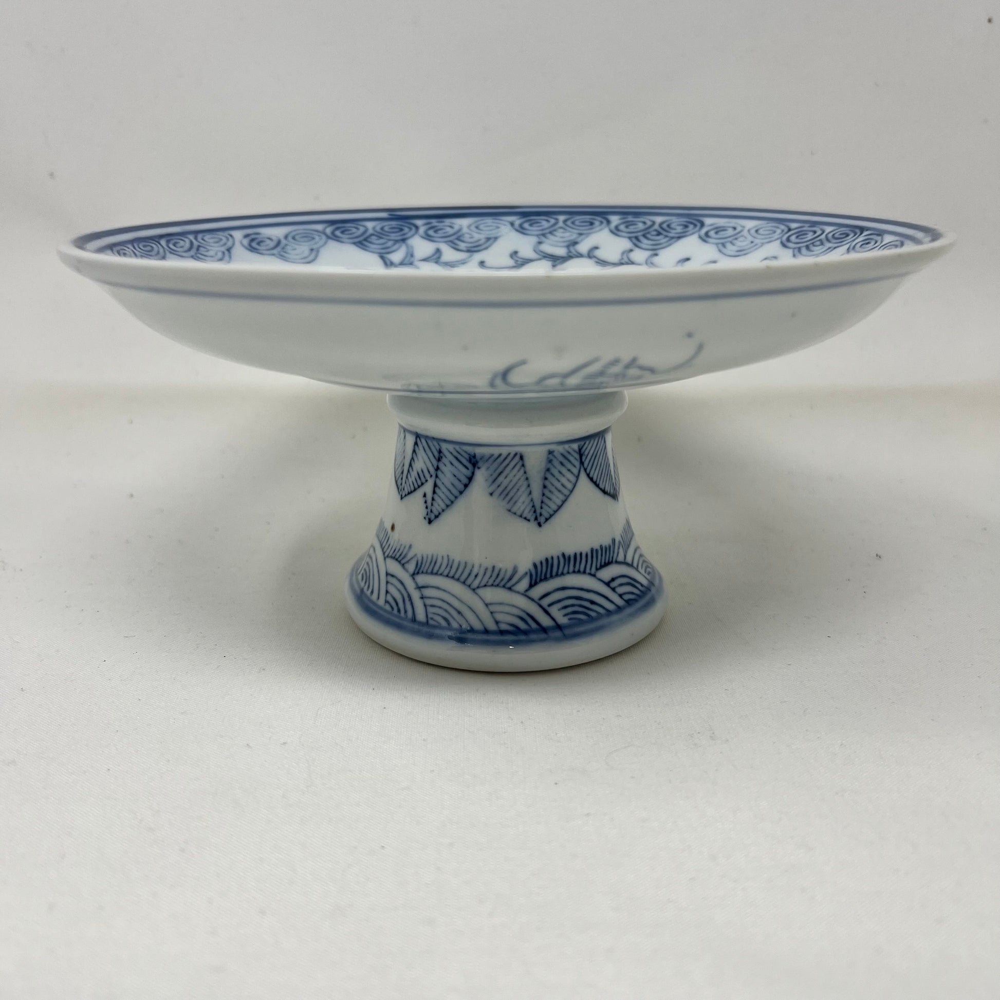VINTAGE Asian Blue White Pedestal Bowl
